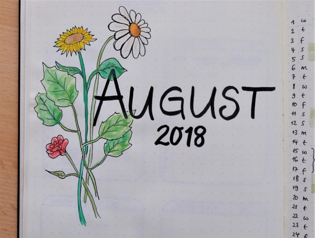 Der August besteht aus Wildblumen und Sonnenschein, Urlaub und Gelassenheit. Der Monat August ist im Kalender durch blumige Illustrationen gekennzeichnet und die Farben Rot und Grün stechen besonders stark hervor.